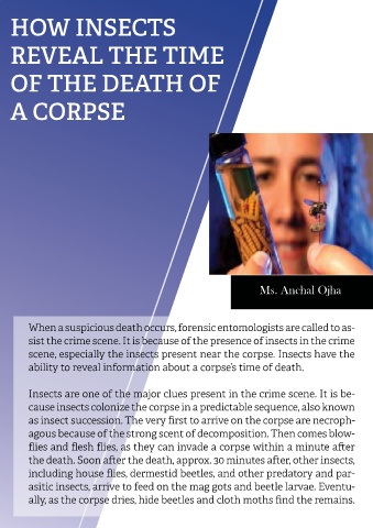 scene, especially the insects present near the corpse. Insects have the